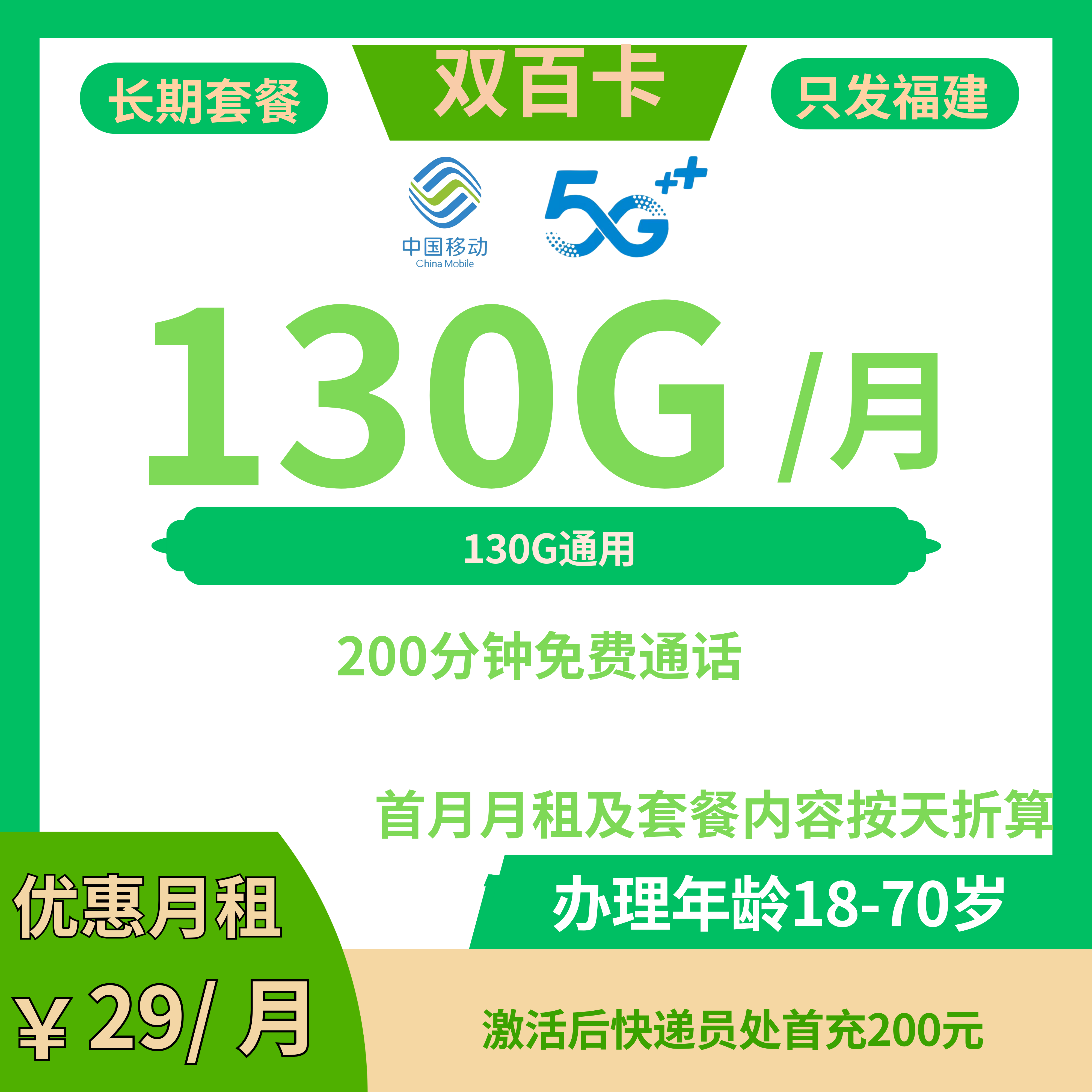 29元/月享130G通用+30G定向+300分钟语音通话+会员权益